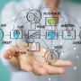 Businesswoman on blurred background using manuscript project presentation with her hand